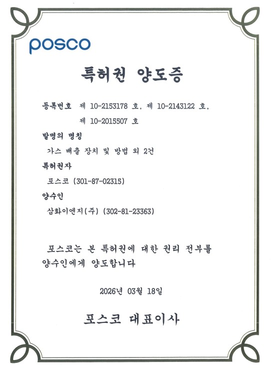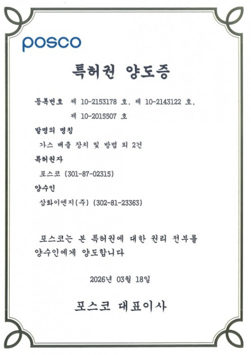 포스코 특허권 양도증