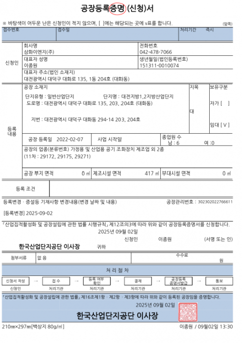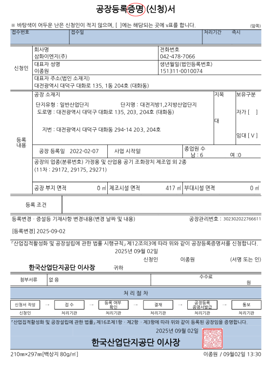 공장등록증명서
