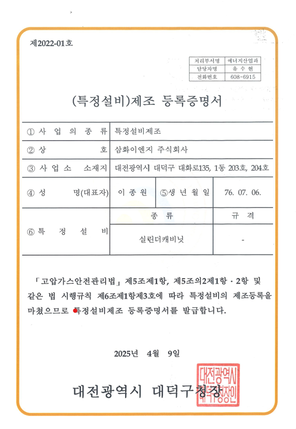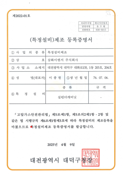 특정설비_제조 등력증명서